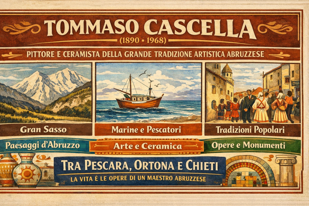 Tommaso Cascella contribuì a diffondere la tradizione artistica abruzzese nel Novecento, unendo pittura, ceramica e arti decorative in uno stile profondamente legato al territorio.